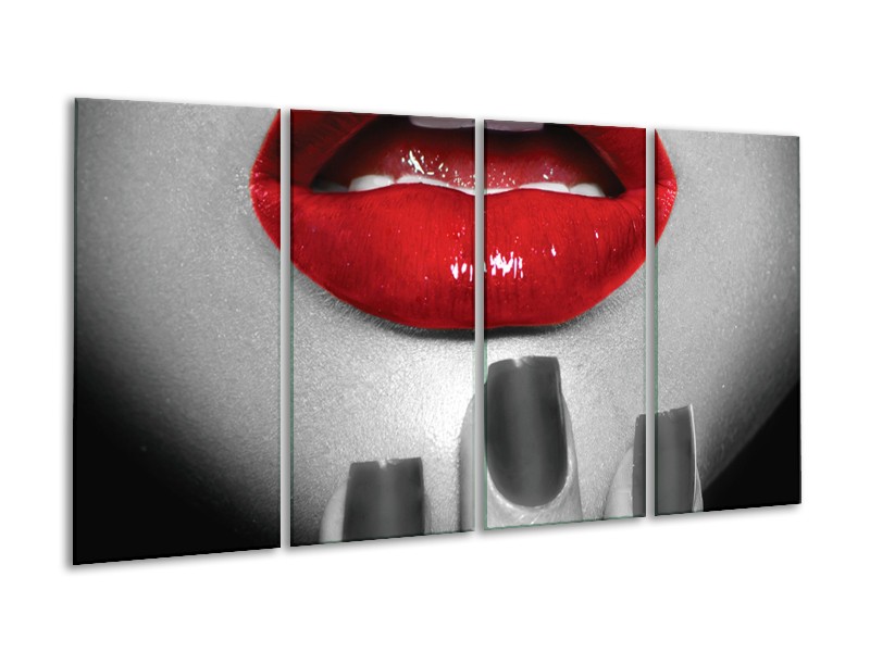 Glasschilderij Lippen, Vrouw | Grijs, Rood | 160x80cm 4Luik