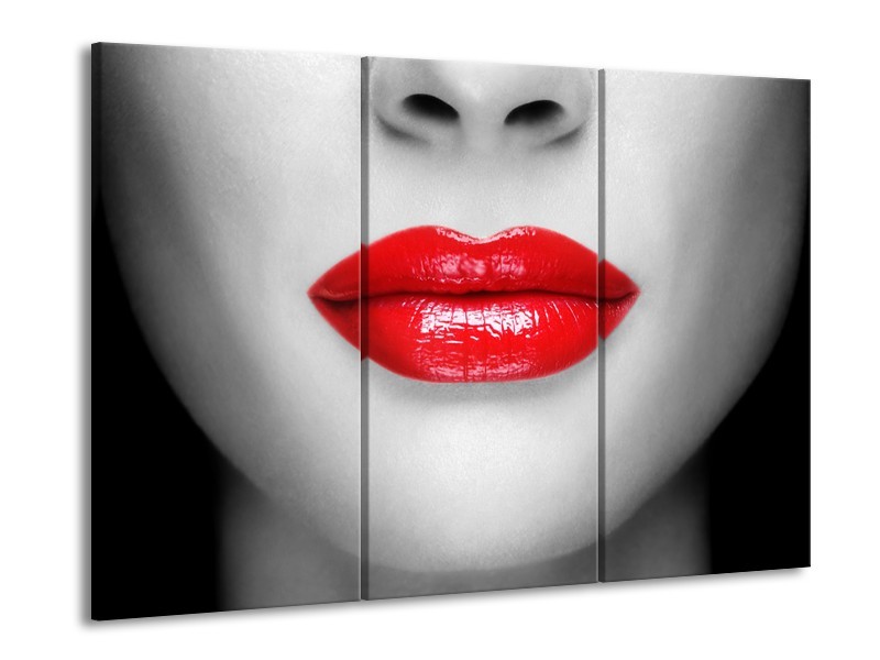 Glasschilderij Lippen, Vrouw | Grijs, Rood | 60x90cm 3Luik