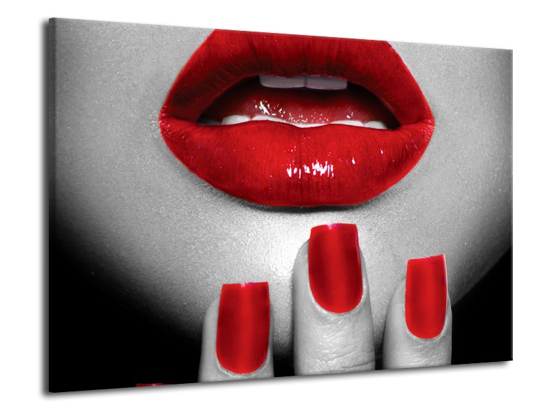 Glasschilderij Lippen, Vrouw | Grijs, Rood | 70x50cm 1Luik