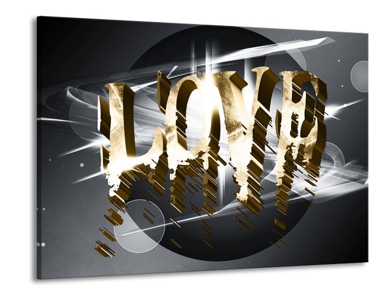 Glasschilderij Love, Abstract | Grijs, Crème , Goud | 100x70cm 1Luik