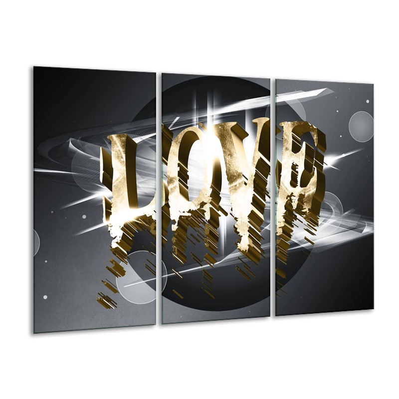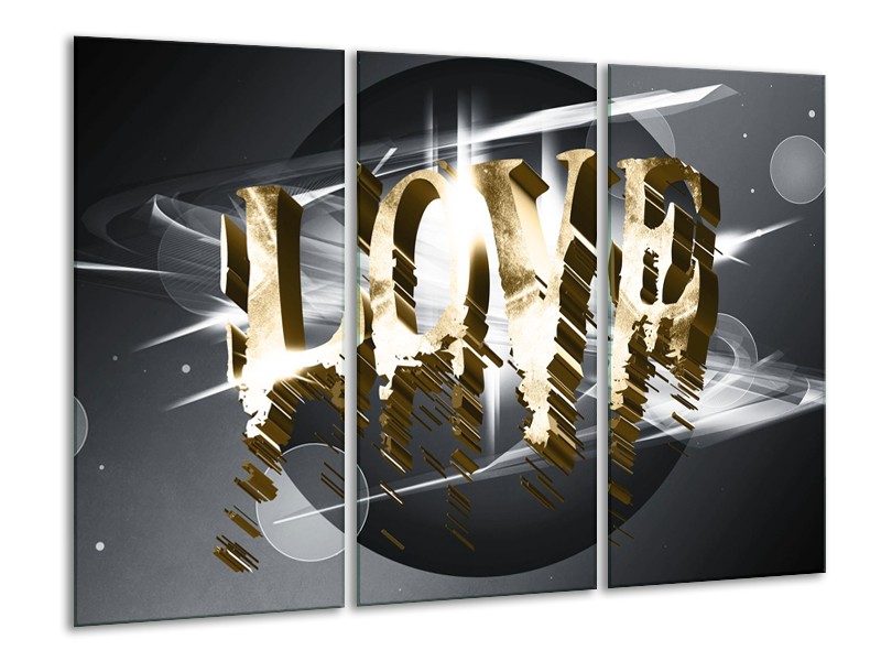 Glasschilderij Love, Abstract | Grijs, Crème , Goud | 120x80cm 3Luik