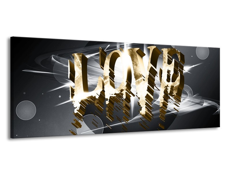 Glasschilderij Love, Abstract | Grijs, Crème , Goud | 145x58cm 1Luik