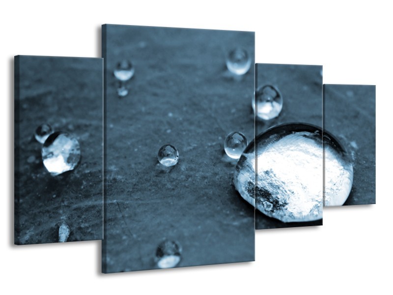 Glasschilderij Macro, Druppel | Blauw, Grijs | 160x90cm 4Luik