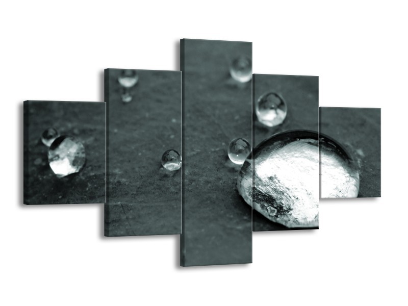 Glasschilderij Macro, Druppel | Grijs, Groen, Zwart | 125x70cm 5Luik