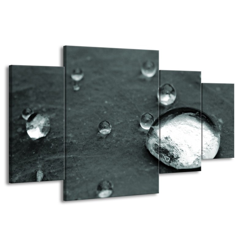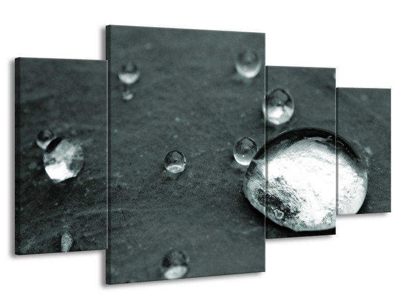 Glasschilderij Macro, Druppel | Grijs, Groen, Zwart | 160x90cm 4Luik