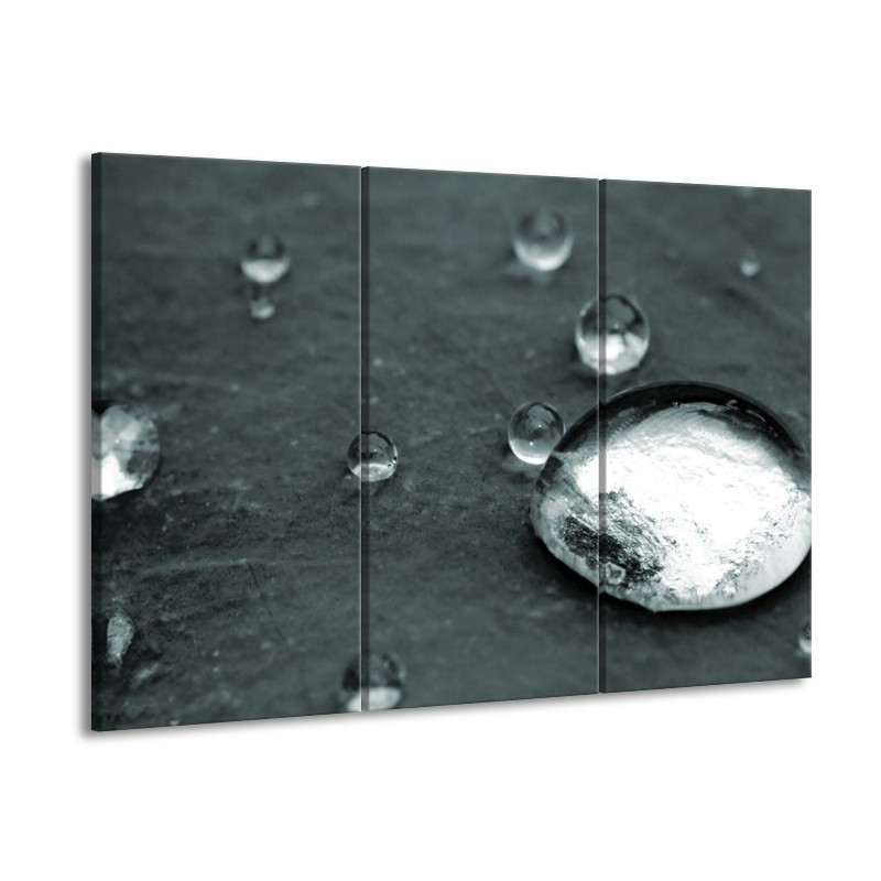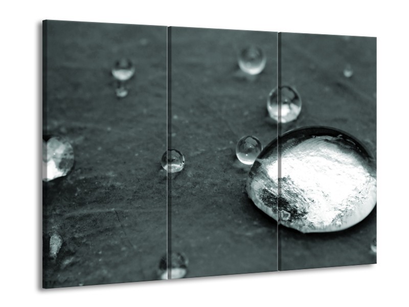 Glasschilderij Macro, Druppel | Grijs, Groen, Zwart | 60x90cm 3Luik