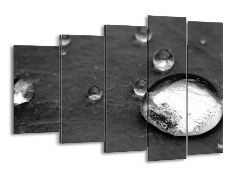 Glasschilderij Macro, Druppel | Zwart, Wit, Grijs | 150x100cm 5Luik