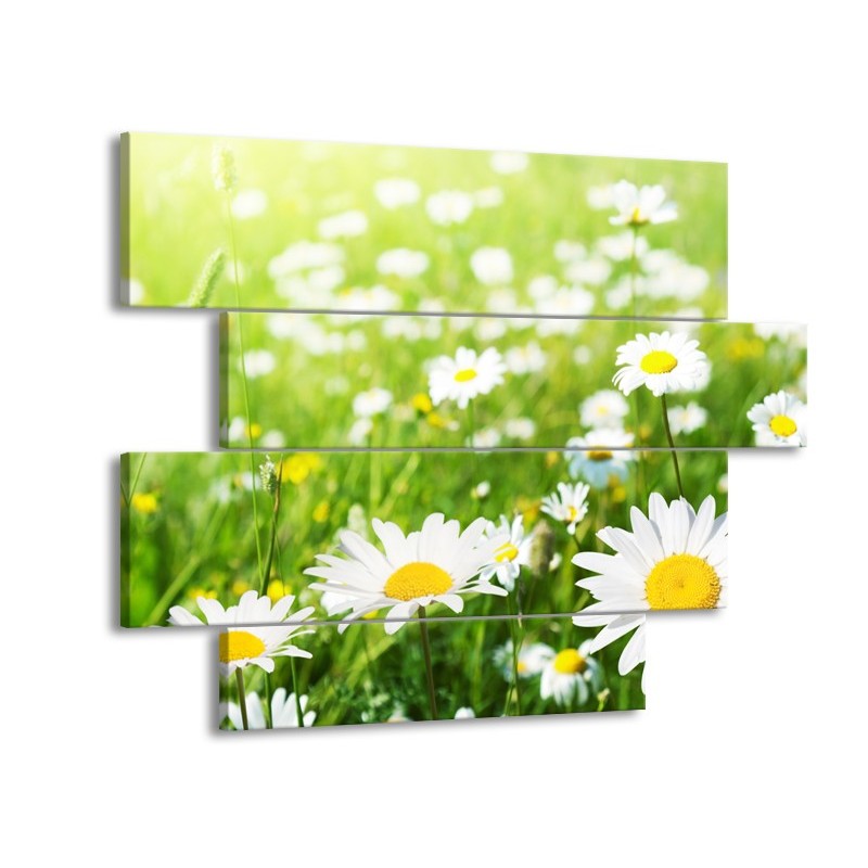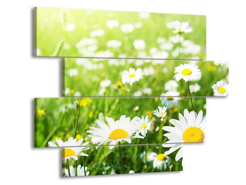 Glasschilderij Madeliefje, Bloemen | Groen, Wit, Geel | 115x85cm 4Luik