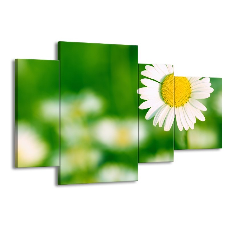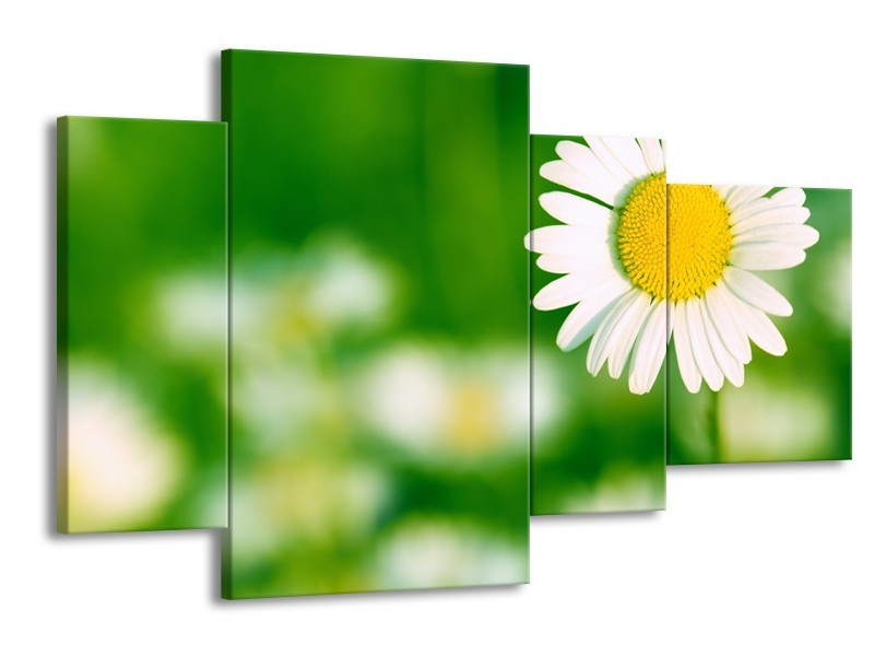 Glasschilderij Madeliefje, Bloemen | Groen, Wit, Geel | 120x75cm 4Luik