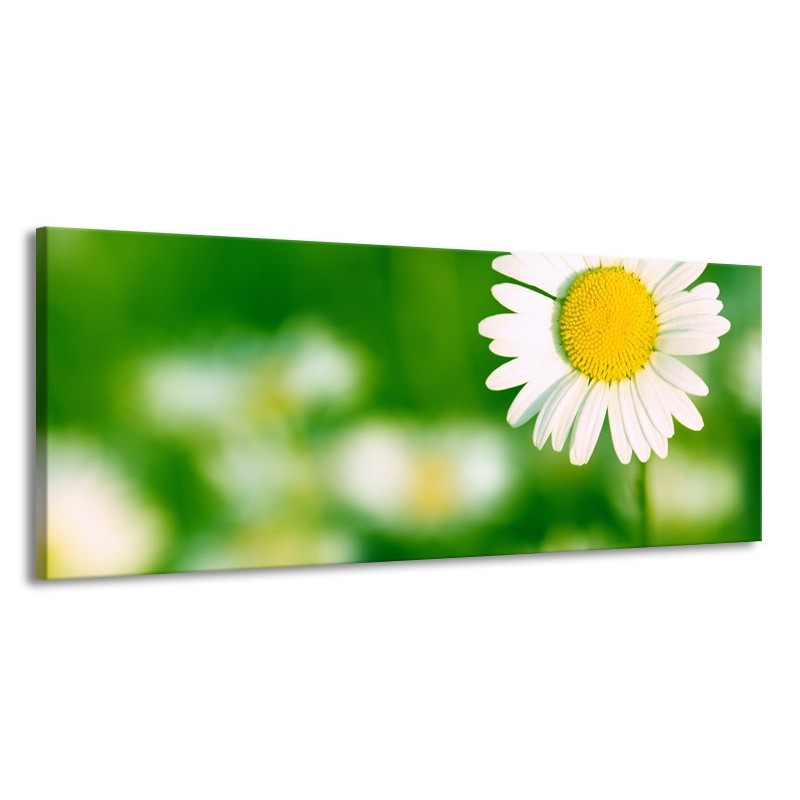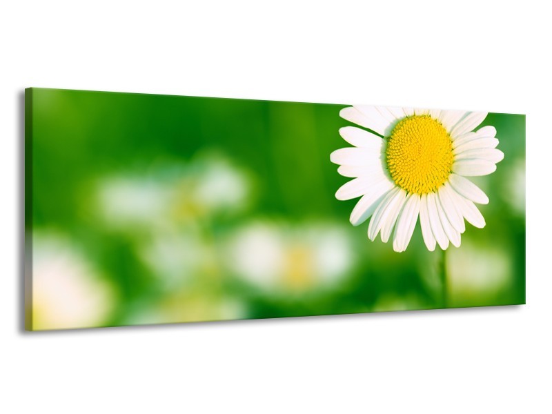 Glasschilderij Madeliefje, Bloemen | Groen, Wit, Geel | 145x58cm 1Luik