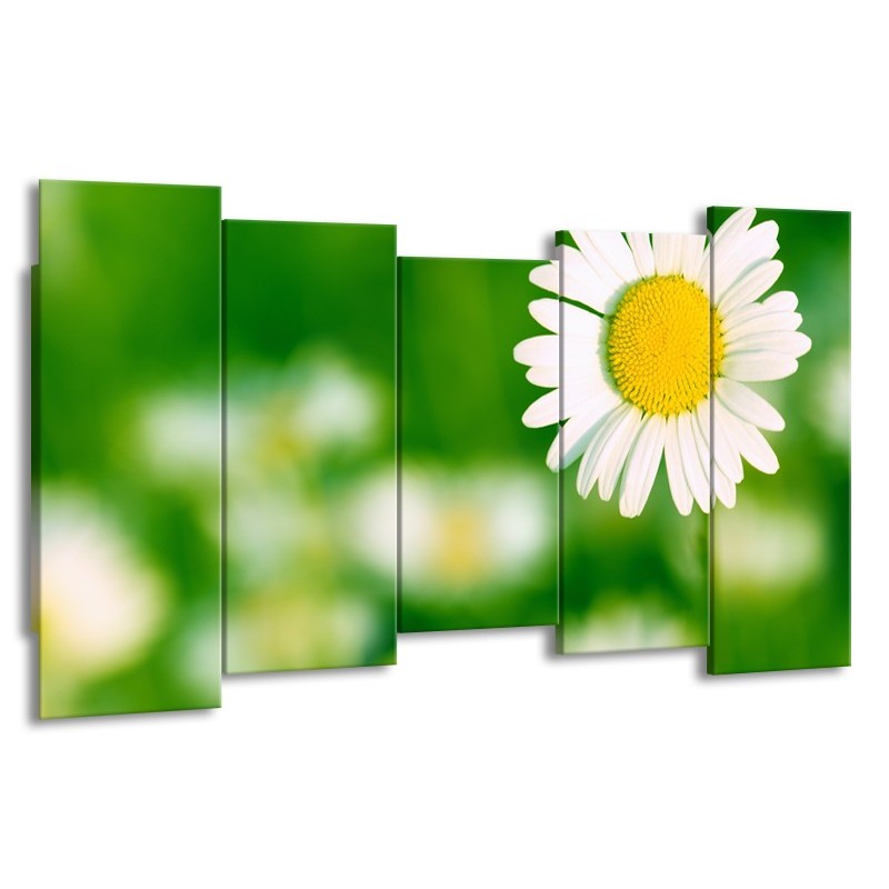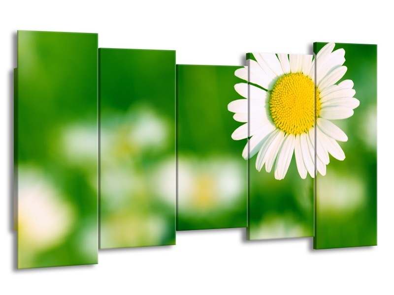 Glasschilderij Madeliefje, Bloemen | Groen, Wit, Geel | 150x80cm 5Luik