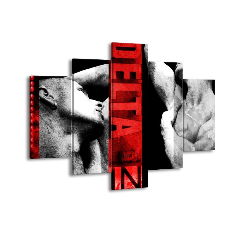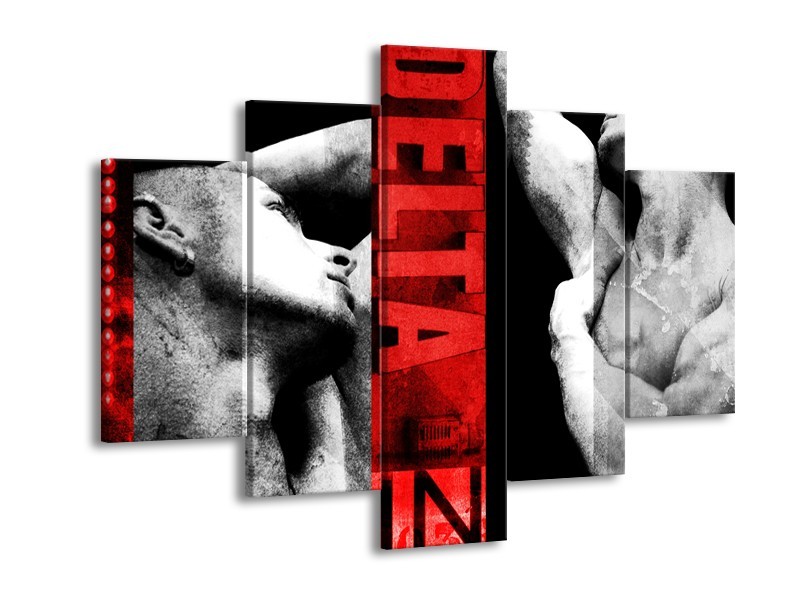 Glasschilderij Man, Kunst | Rood, Zwart, Grijs | 150x105cm 5Luik