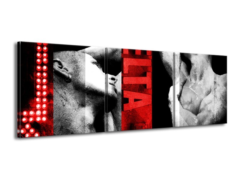 Glasschilderij Man, Kunst | Rood, Zwart, Grijs | 150x50cm 3Luik