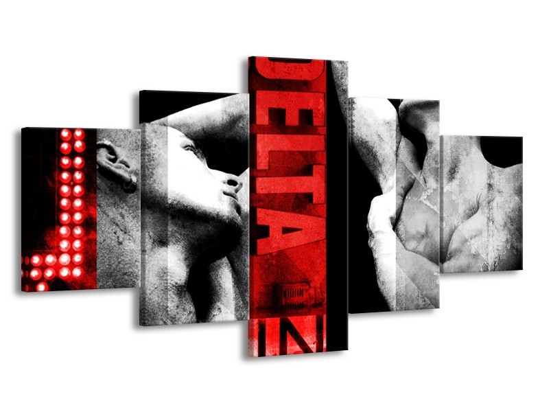Glasschilderij Man, Kunst | Rood, Zwart, Grijs | 150x80cm 5Luik
