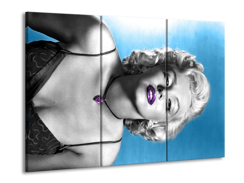 Glasschilderij Marilyn Monroe | Blauw, Grijs, Paars | 60x90cm 3Luik