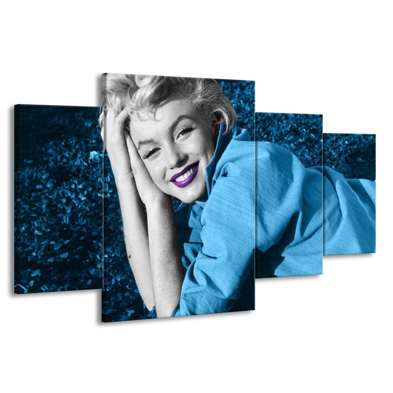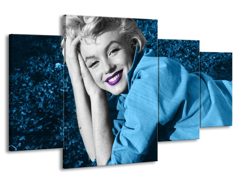 Glasschilderij Marilyn Monroe | Blauw, Paars, Grijs | 160x90cm 4Luik