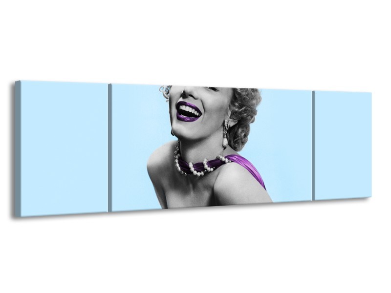 Glasschilderij Marilyn Monroe | Blauw, Paars, Grijs | 170x50cm 3Luik