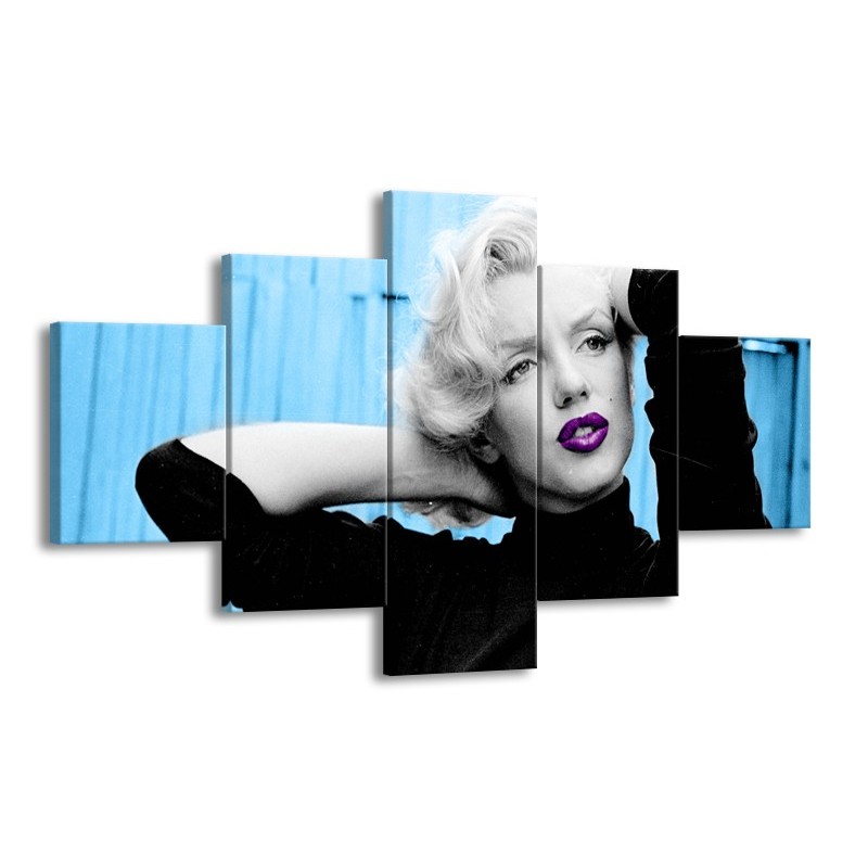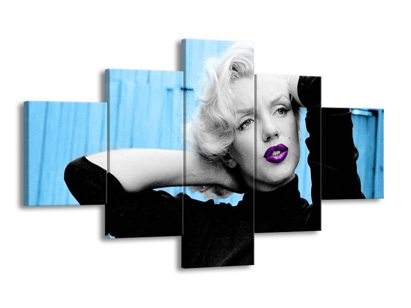 Glasschilderij Marilyn Monroe | Blauw, Zwart, Paars | 125x70cm 5Luik