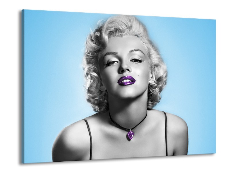 Glasschilderij Marilyn Monroe | Grijs, Blauw, Paars | 100x70cm 1Luik