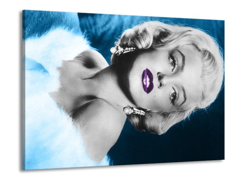Glasschilderij Marilyn Monroe | Grijs, Blauw, Paars | 100x70cm 1Luik