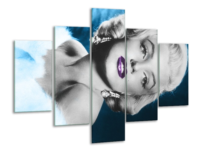 Glasschilderij Marilyn Monroe | Grijs, Blauw, Paars | 100x70cm 5Luik