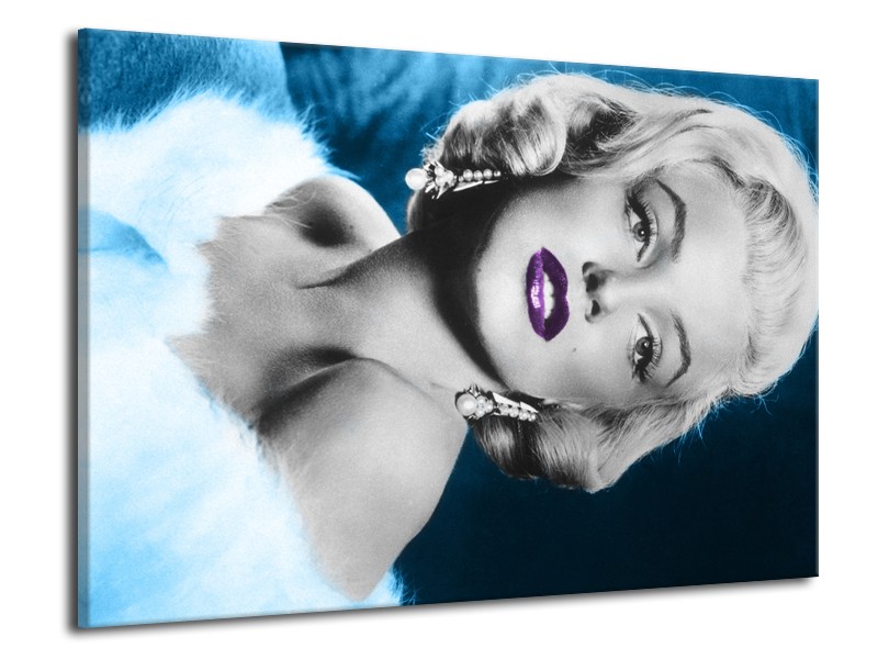 Glasschilderij Marilyn Monroe | Grijs, Blauw, Paars | 70x50cm 1Luik