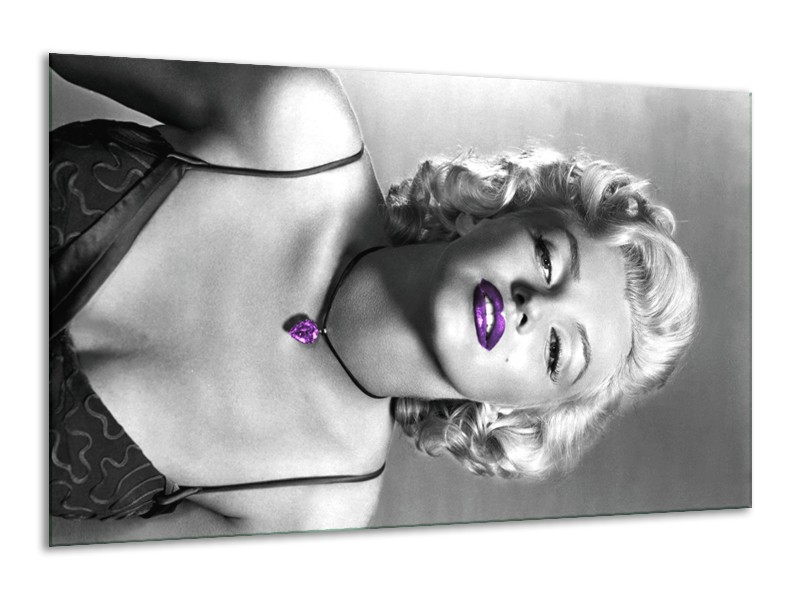 Glasschilderij Marilyn Monroe | Grijs, Paars, Zwart | 120x70cm 1Luik