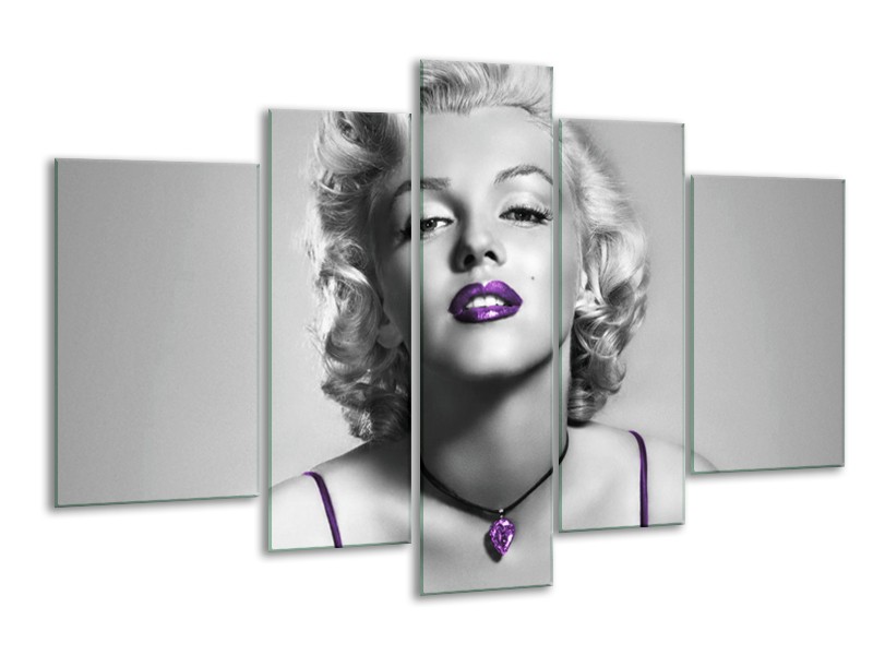 Glasschilderij Marilyn Monroe | Grijs, Paars, Zwart | 170x100cm 5Luik