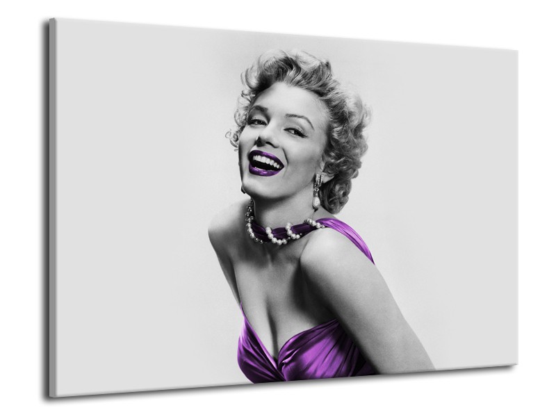 Glasschilderij Marilyn Monroe | Grijs, Paars, Zwart | 70x50cm 1Luik