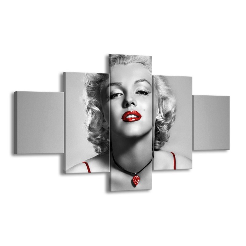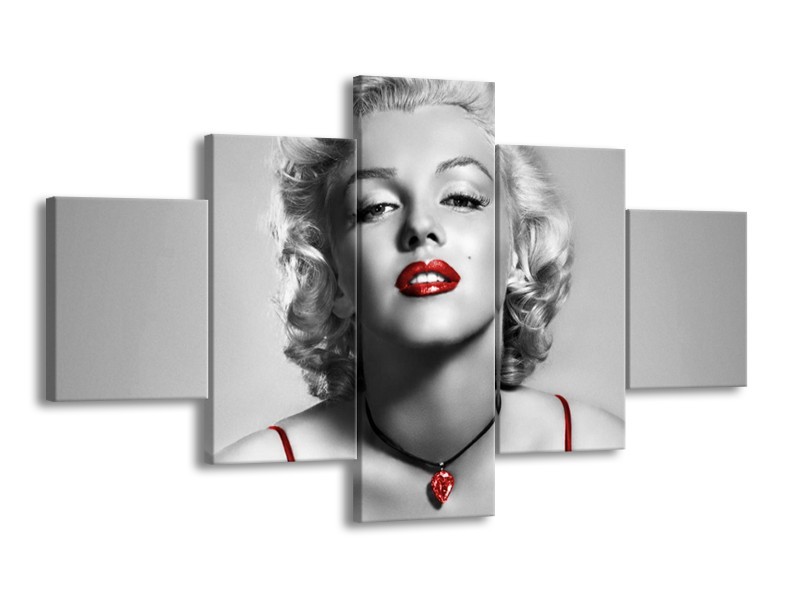 Glasschilderij Marilyn Monroe | Grijs, Rood, Zwart | 125x70cm 5Luik