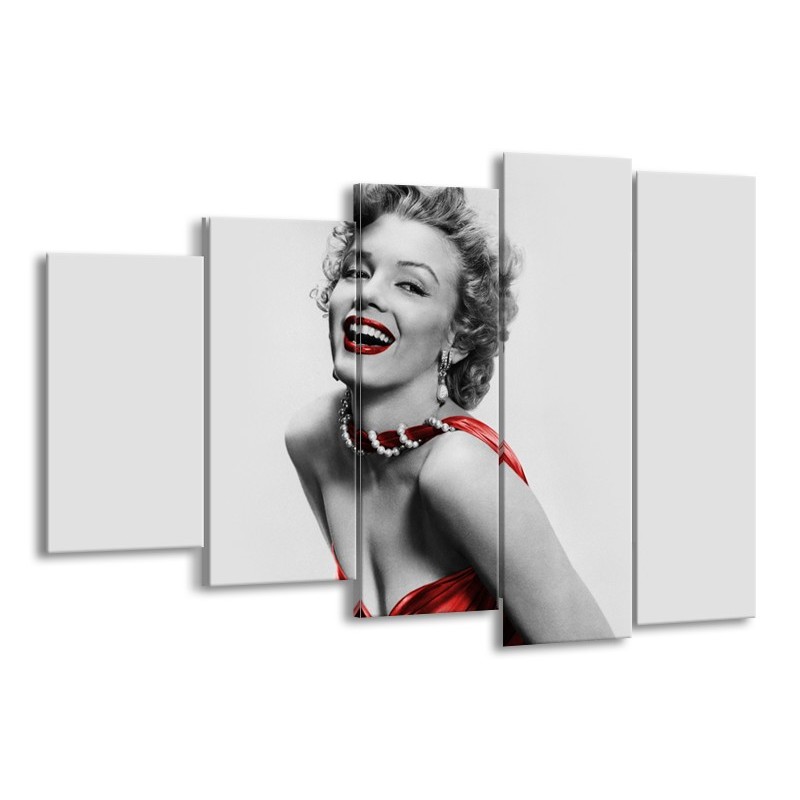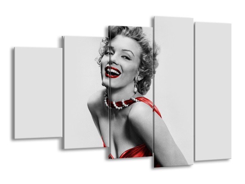 Glasschilderij Marilyn Monroe | Grijs, Rood, Zwart | 150x100cm 5Luik