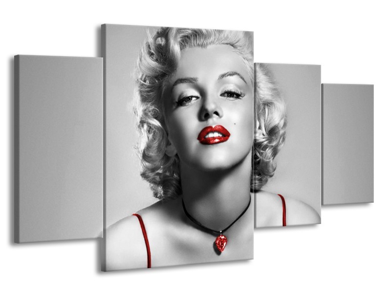 Glasschilderij Marilyn Monroe | Grijs, Rood, Zwart | 160x90cm 4Luik