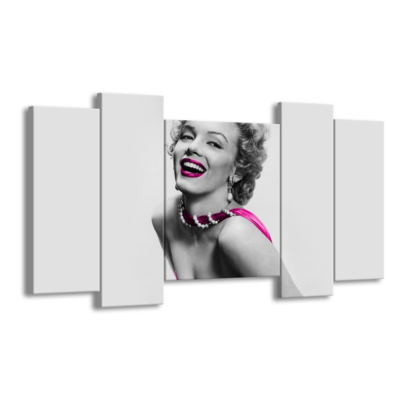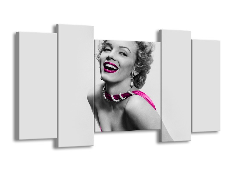 Glasschilderij Marilyn Monroe | Grijs, Roze, Zwart | 120x65cm 5Luik