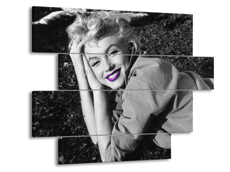 Glasschilderij Marilyn Monroe | Grijs, Zwart, Paars | 115x85cm 4Luik