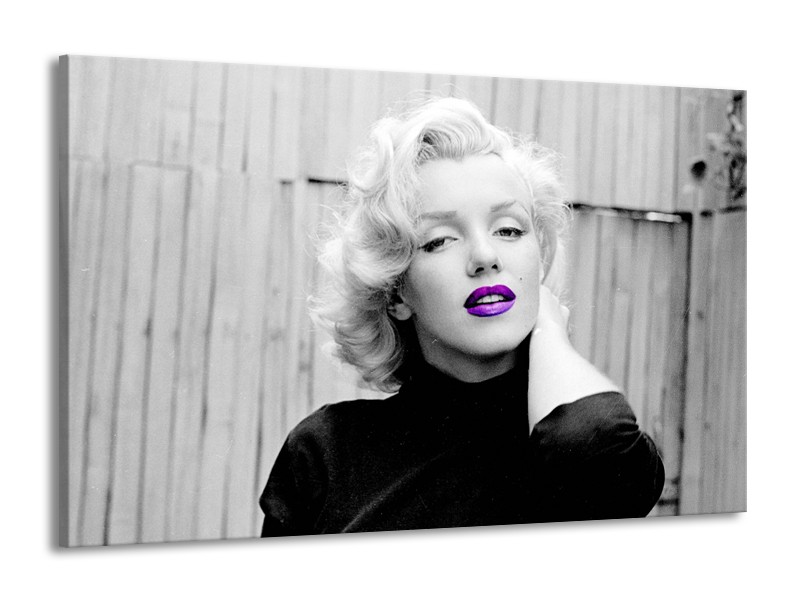 Glasschilderij Marilyn Monroe | Grijs, Zwart Paars | 140x90cm 1Luik