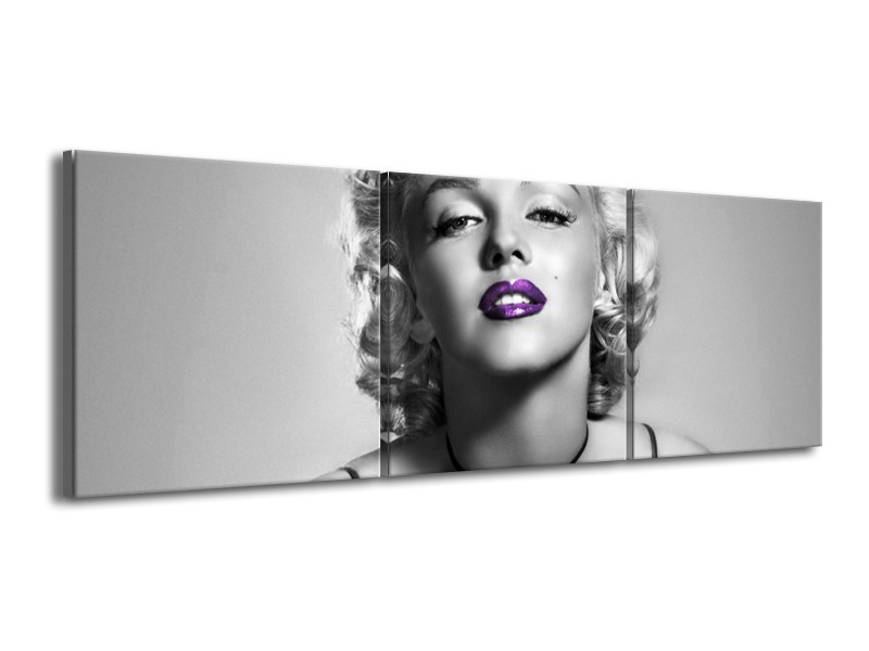 Glasschilderij Marilyn Monroe | Grijs, Zwart, Paars | 150x50cm 3Luik