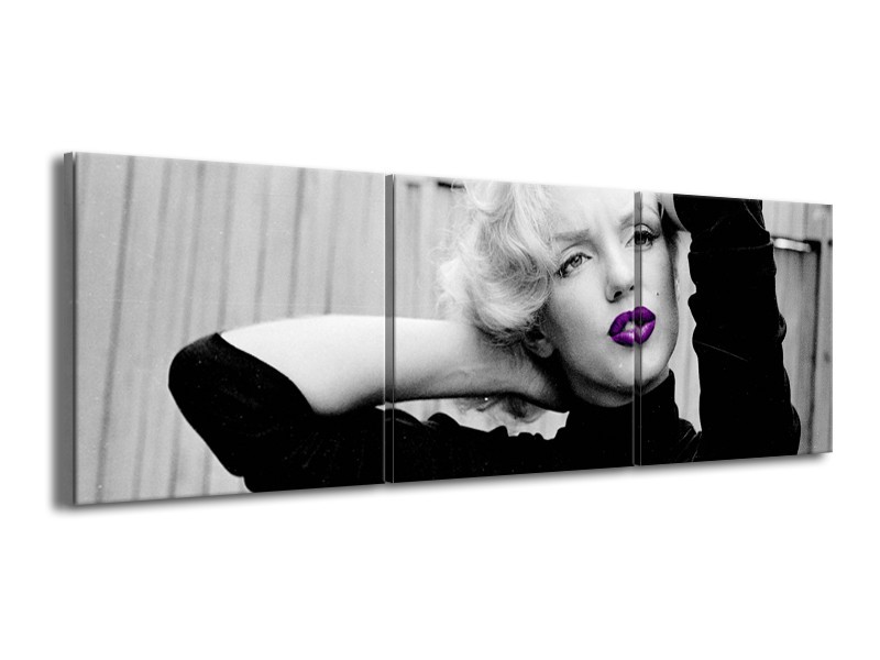 Glasschilderij Marilyn Monroe | Grijs, Zwart, Paars | 150x50cm 3Luik
