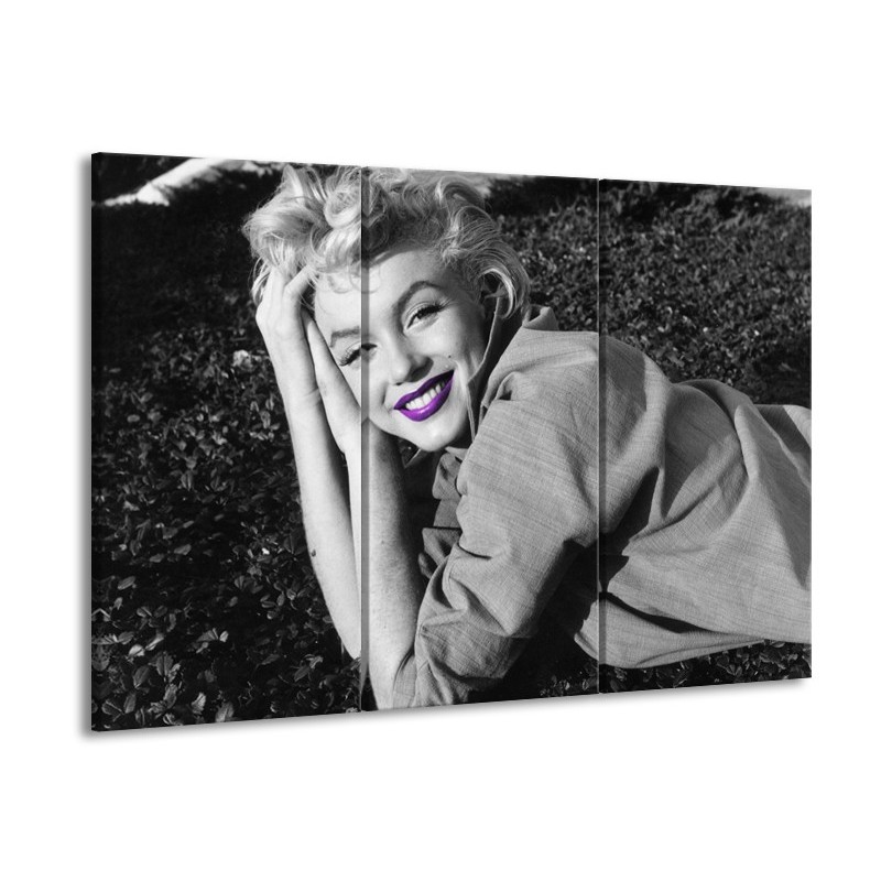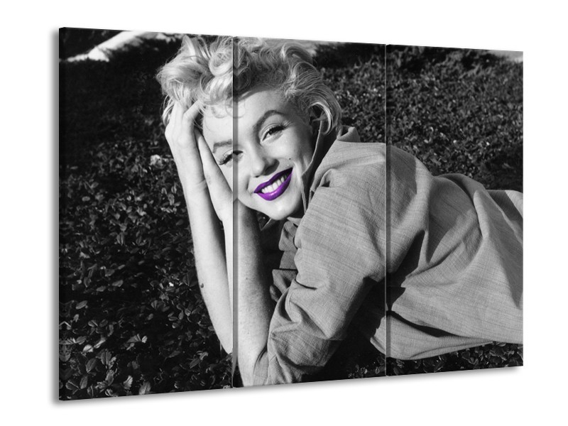 Glasschilderij Marilyn Monroe | Grijs, Zwart, Paars | 60x90cm 3Luik
