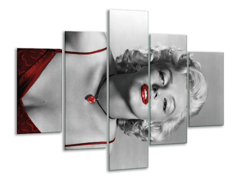 Glasschilderij Marilyn Monroe | Grijs, Zwart, Rood | 100x70cm 5Luik