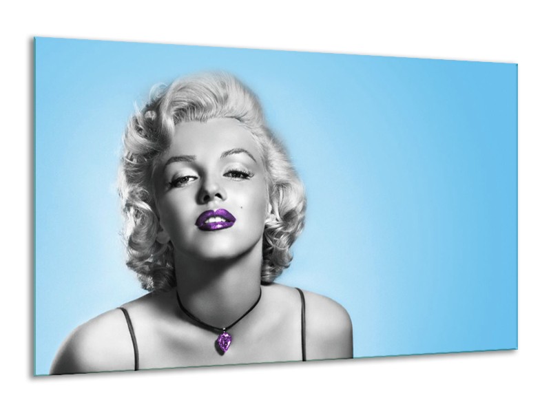 Glasschilderij Marilyn Monroe, Muziek | Grijs, Blauw, Paars | 120x70cm 1Luik