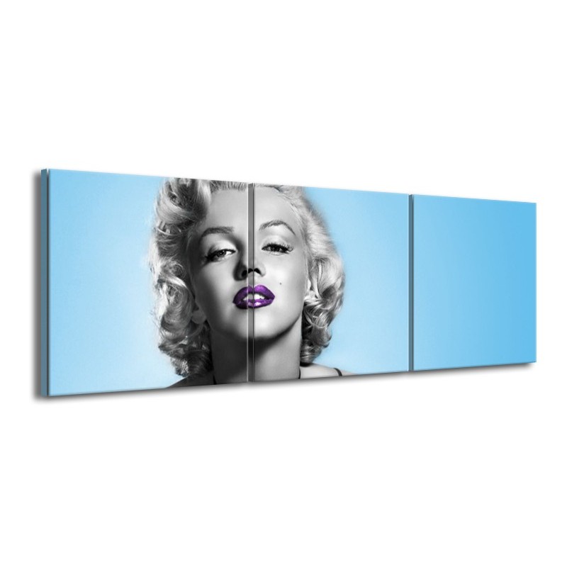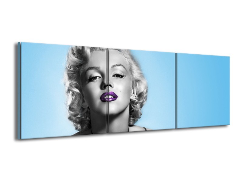 Glasschilderij Marilyn Monroe, Muziek | Grijs, Blauw, Paars | 150x50cm 3Luik