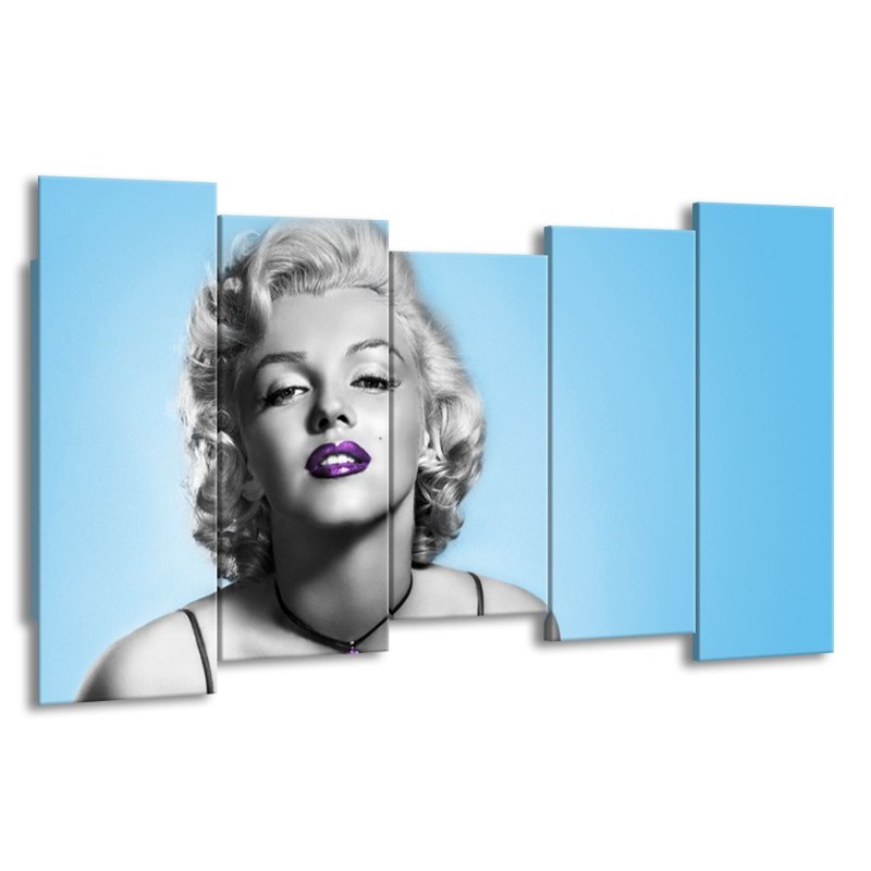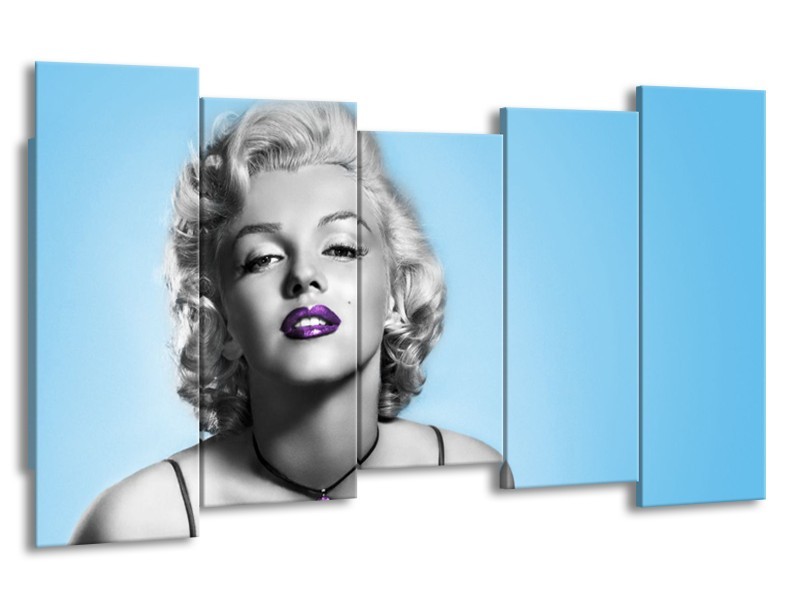 Glasschilderij Marilyn Monroe, Muziek | Grijs, Blauw, Paars | 150x80cm 5Luik
