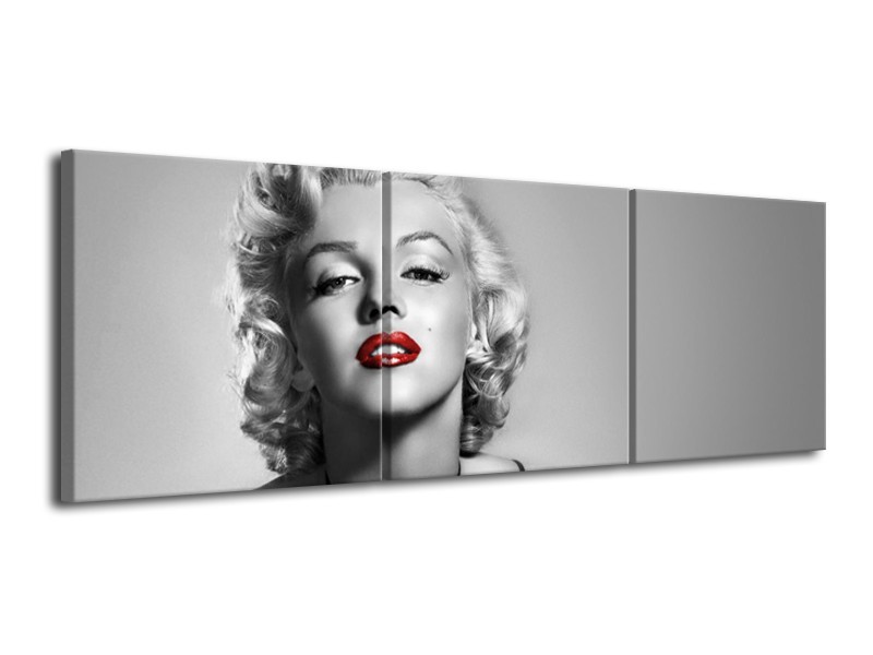 Glasschilderij Marilyn Monroe, Muziek | Grijs, Zwart, Rood | 120x40cm 3Luik