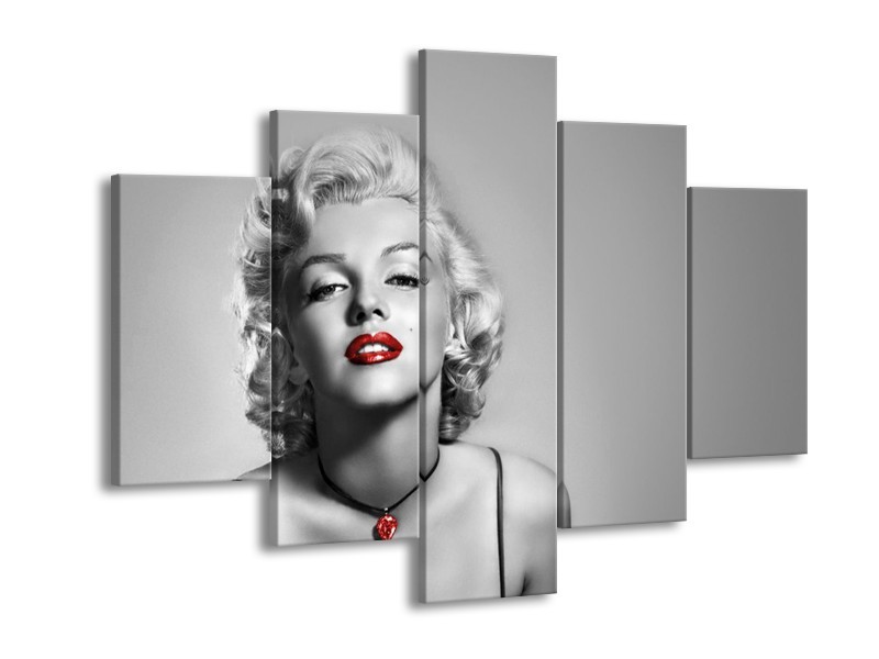 Glasschilderij Marilyn Monroe, Muziek | Grijs, Zwart, Rood | 150x105cm 5Luik