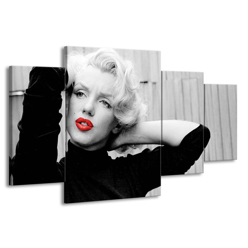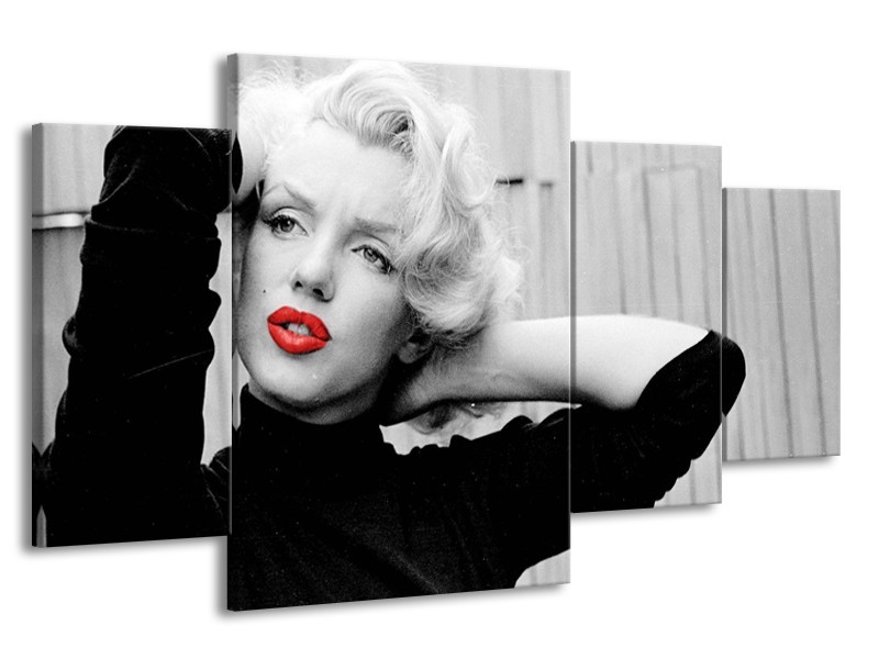 Glasschilderij Marilyn Monroe, Muziek | Grijs, Zwart, Rood | 160x90cm 4Luik
