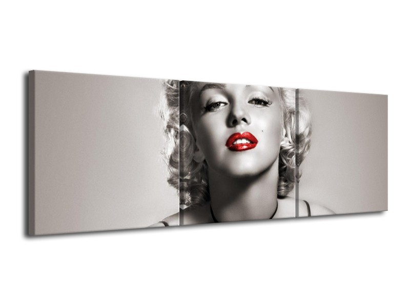 Glasschilderij Marilyn Monroe | Sepia, Rood, Grijs | 120x40cm 3Luik