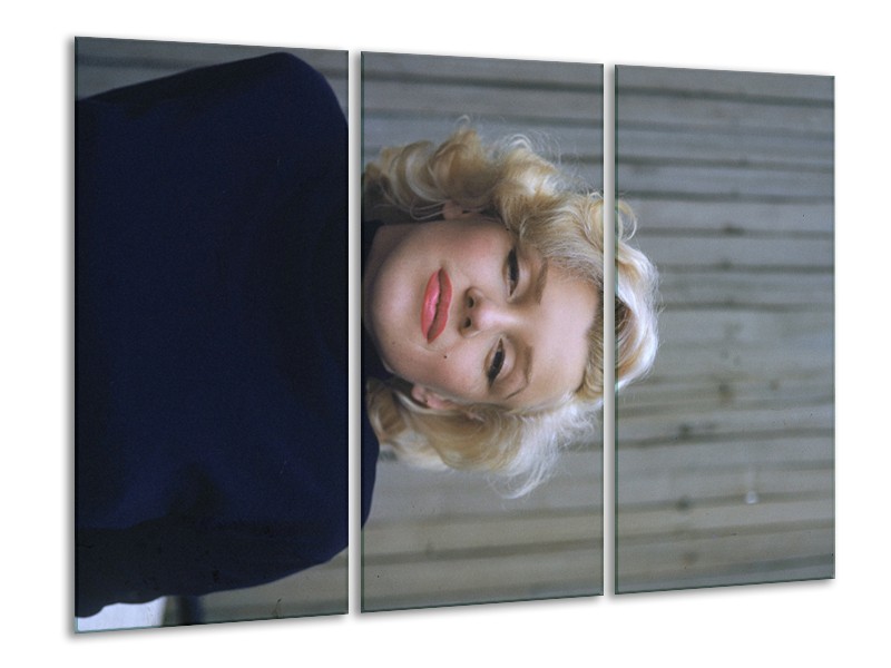 Glasschilderij Marilyn Monroe | Zwart, Crème , Grijs | 120x80cm 3Luik