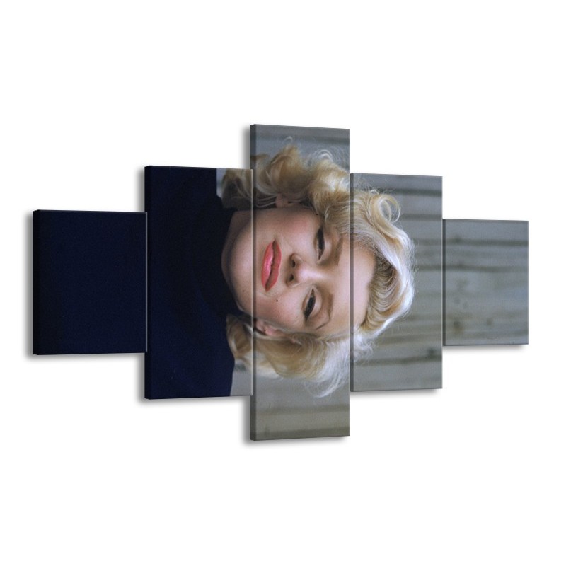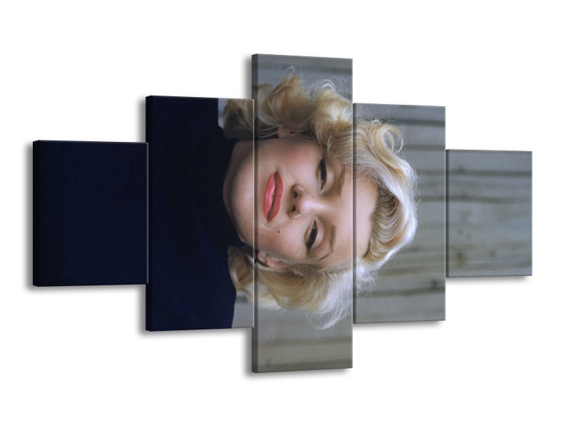 Glasschilderij Marilyn Monroe | Zwart, Crème , Grijs | 125x70cm 5Luik