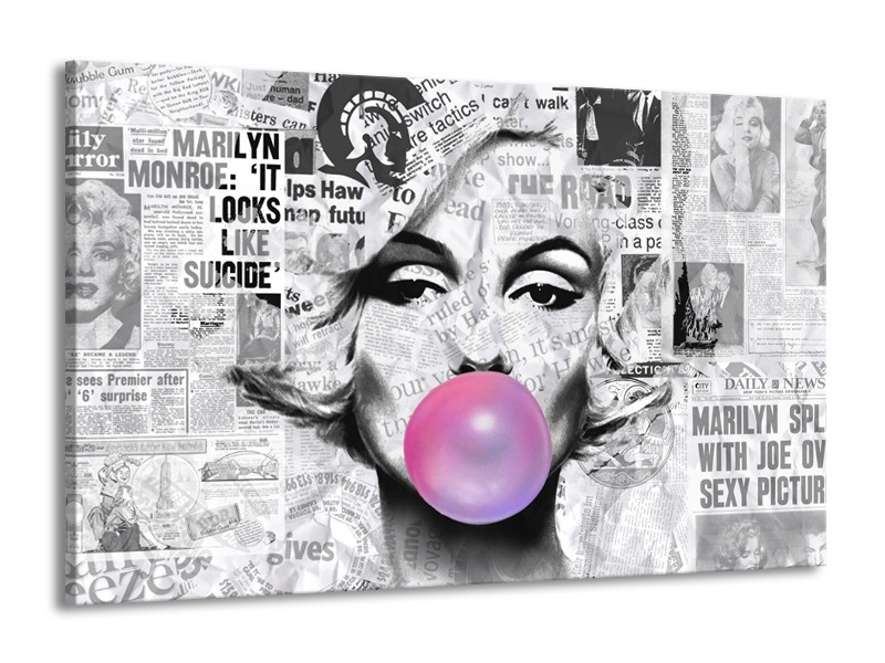 Glasschilderij Marilyn Monroe | Zwart, Grijs, Paars | 140x90cm 1Luik