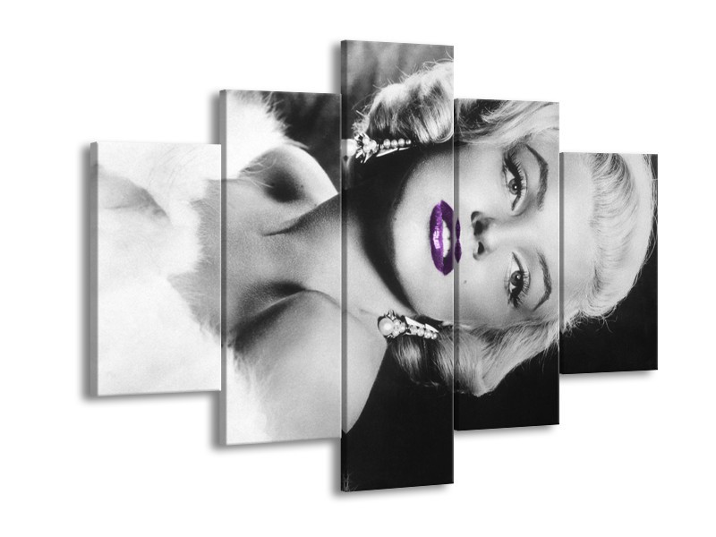 Glasschilderij Marilyn Monroe | Zwart, Grijs, Paars | 150x105cm 5Luik